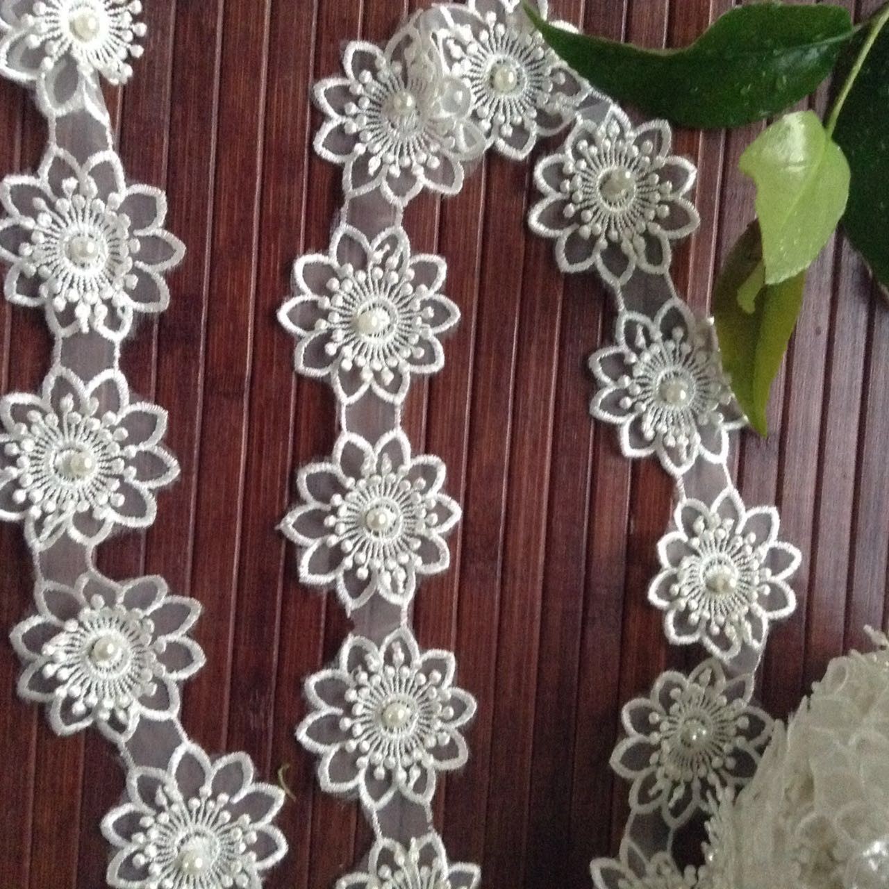 Name Of The Product :Lace Flower Trim 1 Layer+Stamen +Pearl Single Flower 48mm/DIA